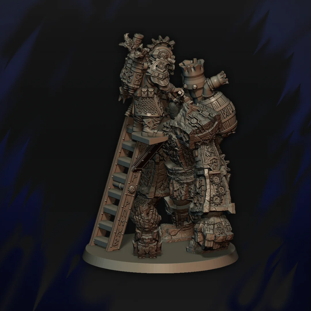 Ingeniero enano reparando golem